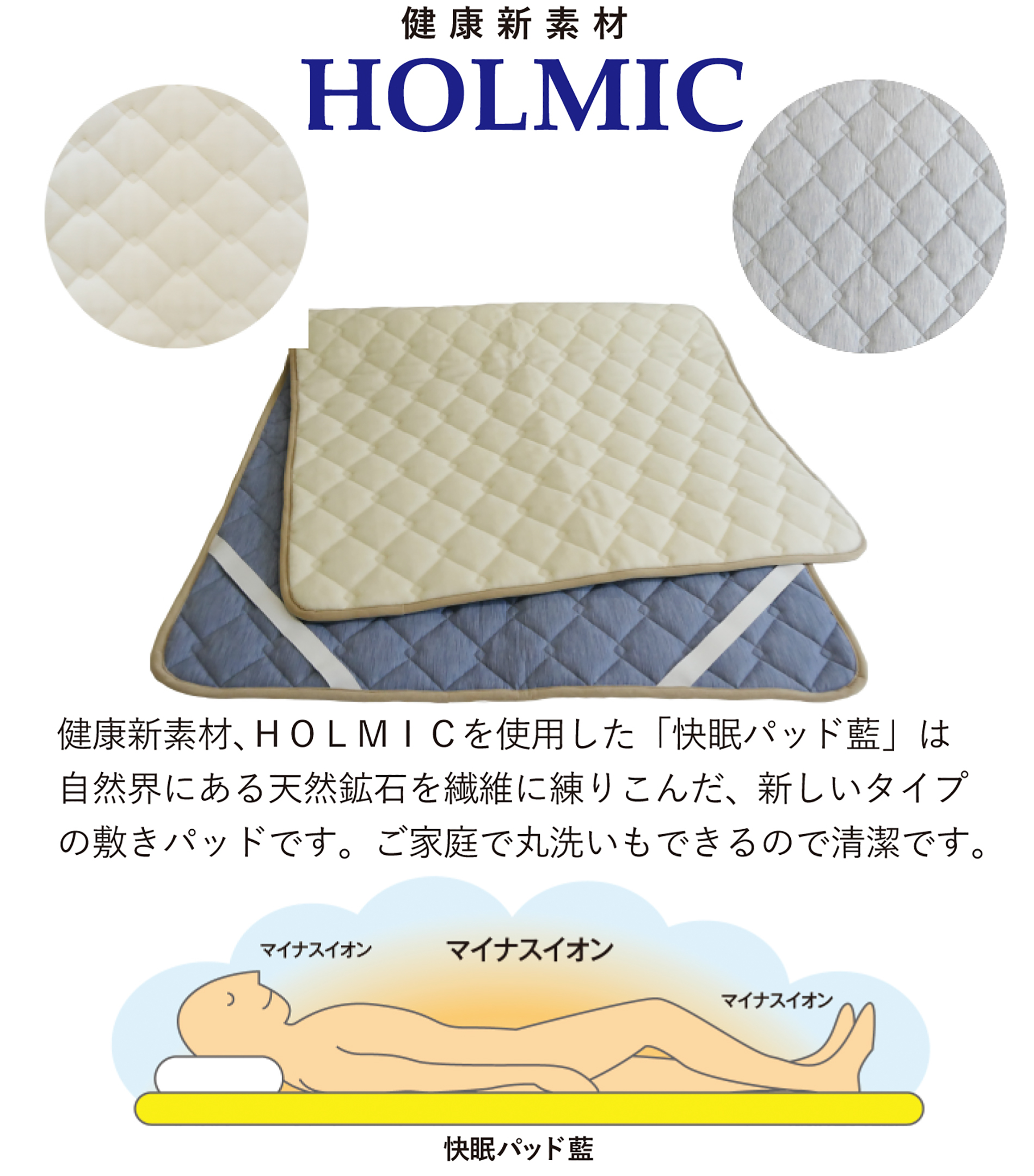 快眠パッド藍も健康素材ホルミックシートを使用しています。表地は肌触りの良いEウール100%
